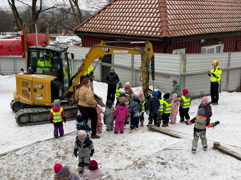 Begge barnehagene har den siste tiden engasjert seg aktivt i det som skjer bak byggegjerdene. Gjennom kunstutstilling, besøk på byggeplassen og møter med menneskene bak prosjektet, har barna fått utforske hvordan et stort byggeprosjekt blir til, på sitt eget vis.